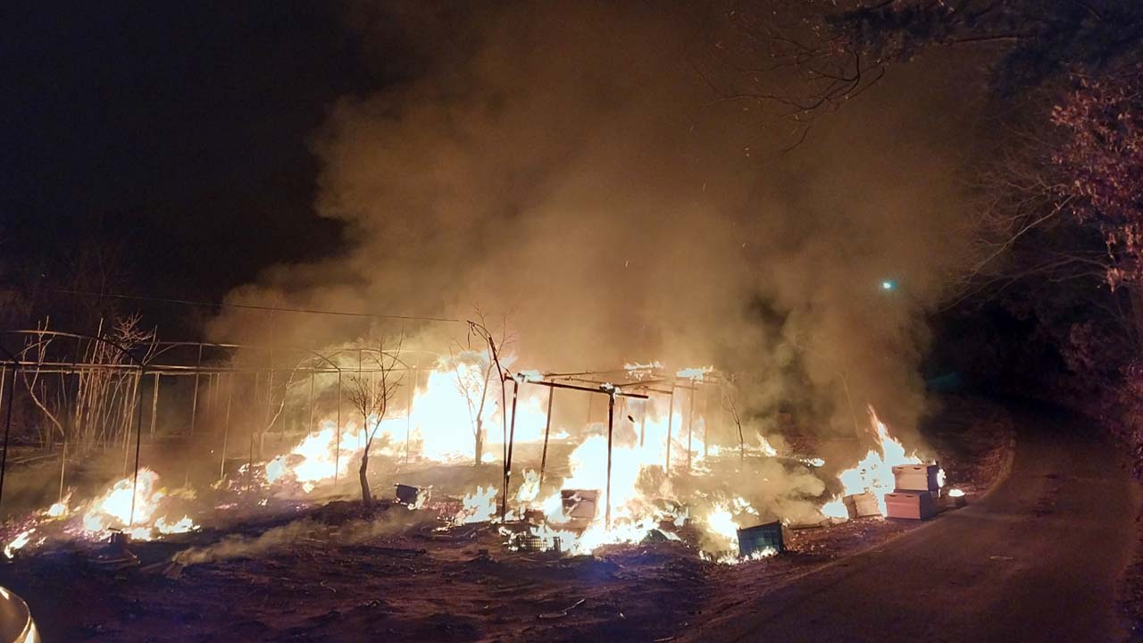 사진 제공 경북소방본부2월 5일 오후 6시 20분쯤 경북 상주시 모동면의 한 양봉장에서 불이 나 40분 만에 꺼졌습니다.다친 사람은 없었지만, 비닐하우스 1개 동과 벌통 70개 불타 소방서 추산 2천만 원의 재산 피해가 났습니다.경찰과 소방 당국은 양봉장 주인이 가족들에게 민속놀이를 보여주려고 불을 피우다 화재가 난 ...