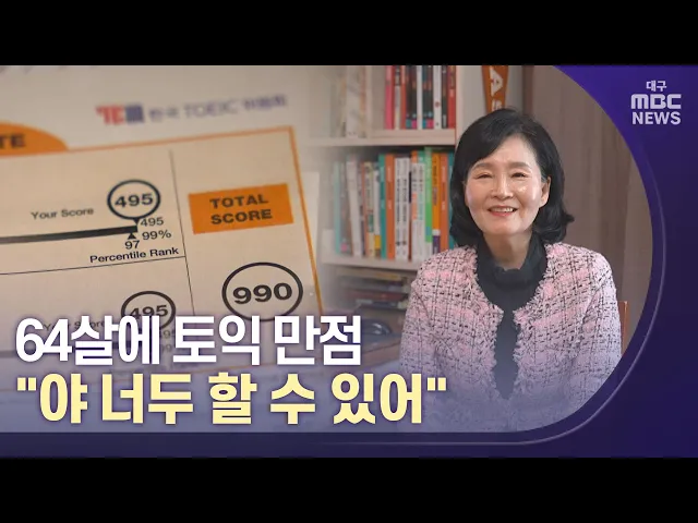◀앵커▶취업 등을 앞두고 필수로 준비하는 영어 능력 시험이죠. 이 토익 시험에서 64살 할머니가 만점을 받아 화제가 되고 있습니다.평생 주부로 살다가 늦깎이 대학원생이 되면서 2년간 시험을 준비해 이룬 성과라고 하는데요. 할머니의 토익 만점 비결은 뭔지, 손은민 기자가 전해드립니다. ◀현장▶"저는 최근에 토익 만점...