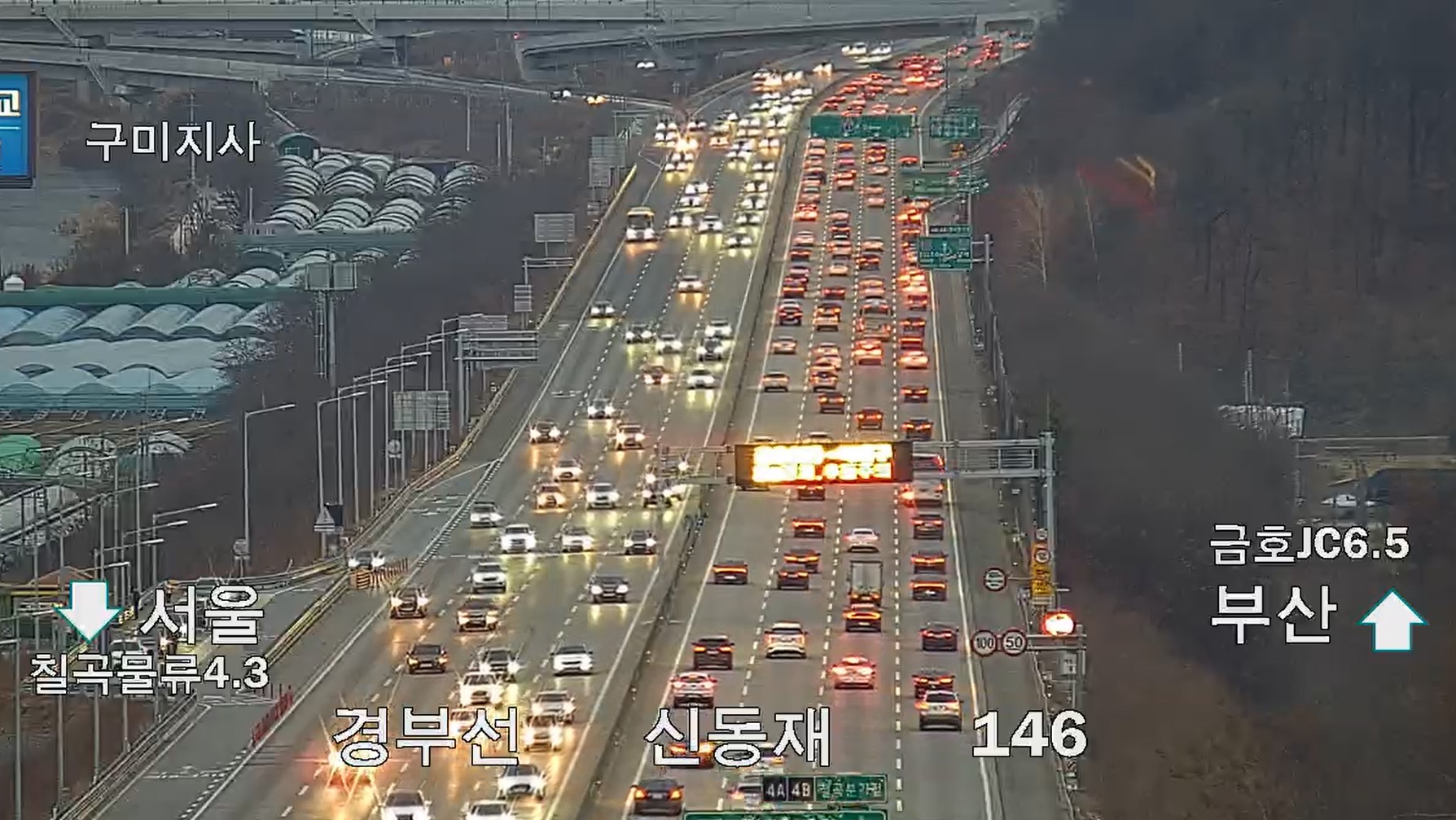 설날인 1월 22일, 대구·경북 고속도로는 귀경, 귀성 차량이 몰리면서 오전부터 곳곳에서 정체가 이어졌습니다.경부고속도로 서울 방향은 북대구 나들목에서 금호 분기점 일대, 중앙고속도로 춘천 방향은 풍기 나들목 부근에서, 중부내륙고속도로는 창원 방향 김천 분기점에서 선산 나들목 구간에 차량이 서행하고 있습니다....