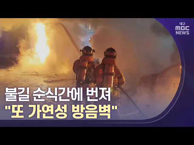 ◀앵커▶1월 3일 밤 대구지역 고속도로를 달리던 차에서 불이 났는데, 이 불이 갓길 방음벽에 옮겨붙었습니다. 다행히 다친 사람은 없었지만 불은 순식간에 차량과 방음벽 36m를 녹여버렸습니다.불이 난 방음벽은 5명이 숨진 제2경인고속도로 방음터널과 같은 소재였습니다. 손은민 기자입니다.◀기자▶고속도로 갓길에 있는 방...