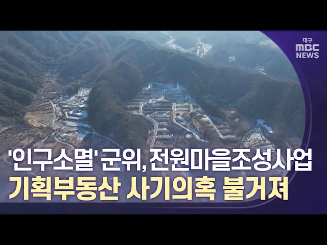 ◀앵커▶경북 군위군의 한 전원마을 조성사업을 두고 기획 부동산 사기 의혹이 제기됐습니다.새로운 마을을 조성하는 사업은 인구소멸을 겪고 있는 농어촌에 도시민을 유입시키기 위한 정책 사업의 일종인데요. 군위군은 마을이 조성될 땅에 18억 원을 들여 도로나 전기 같은 기반 시설 공사까지 해줬는데 집을 짓고 살아야 ...