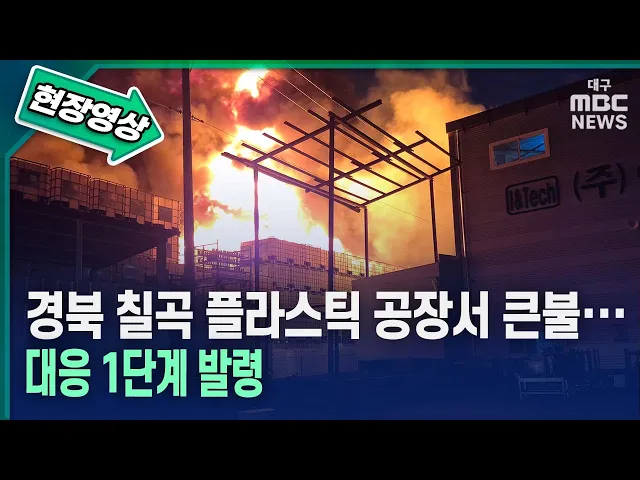 7월 23일 오후 8시쯤 경북 칠곡군 가산면의 한 플라스틱 용기 제조 공장에서 불이 나 3시간 만에 큰 불길이 잡혔습니다.이 불로 공장 3개 동이 전소하고 다른 4개 동이 일부 불에 탄 것으로 파악됐습니다.앞서 소방 당국은 화재 20분 만에 관할 소방서의 소방력을 총동원하는 대응 1단계를 발령하고 진화 작업을 벌였습니다...