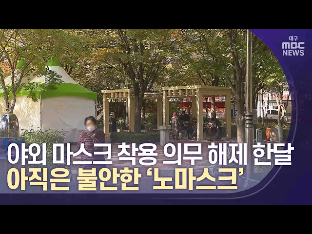 ◀앵커▶야외에서 마스크 착용 의무가 전면 해제된 지 한 달이 됐습니다.마스크 없는 일상, 모두가 간절히 기다려 왔는데 지금은 얼마나 달라졌을까요?손은민 기자가 도심 곳곳을 둘러보며 확인해 봤습니다. ◀기자▶평소 유동 인구가 많은 대구 동성로.거리를 지나는 사람들 거의 모두가 마스크를 썼습니다.공원에 앉아 쉬는 ...