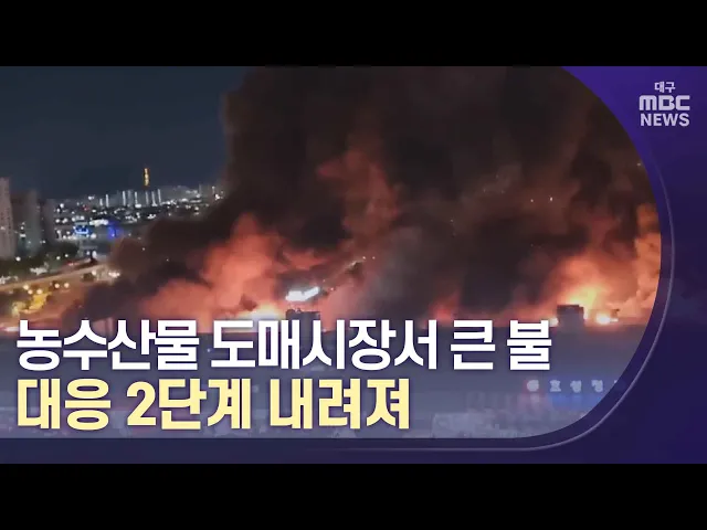 10월 25일 오후 8시 반쯤 대구 북구 매천동 농수산물 도매시장에서 난 불이 3시간 반 만인 자정쯤 완전히 꺼졌습니다.소방당국은 인접 소방서의 자원을 동원하는 대응 2단계를 발령하고 장비 100여 대, 인력 330여 명을 투입해 진화 작업을 벌였습니다.당시 상인 대부분이 장사를 마치고 집에 돌아간 뒤라 인명 피해는 없었...
