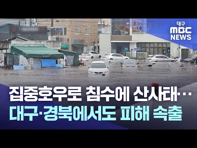 ◀앵커▶대구와 경북 내륙에 시간당 50mm에 가까운 집중호우가 쏟아졌습니다.산에서 흙탕물과 토사가 쏟아지며 마을과 사찰을 덮쳤습니다.손은민 기자입니다. ◀기자▶산길을 따라 흙탕물이 폭포처럼 쏟아집니다.나무는 뿌리째 뽑혀 쓰러졌고 바위와 흙이 논밭과 마을길을 덮쳤습니다.오늘(17일) 오후 1시 반쯤 경북 청도군 구...