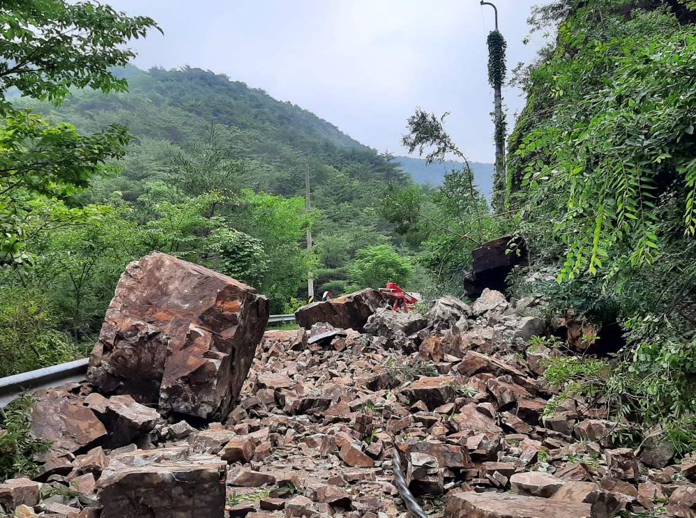 7월 16일 오전 6시 40분쯤 경북 포항시 북구 죽장면 69번 지방도에서 산사태가 났습니다.쏟아진 흙과 바위들이 왕복 2차로를 덮치면서 일대 통행이 금지됐습니다. 다친 사람은 없는 것으로 파악됐습니다. 경찰과 지자체는 중장비를 동원해 현장을 수습하고 있습니다.