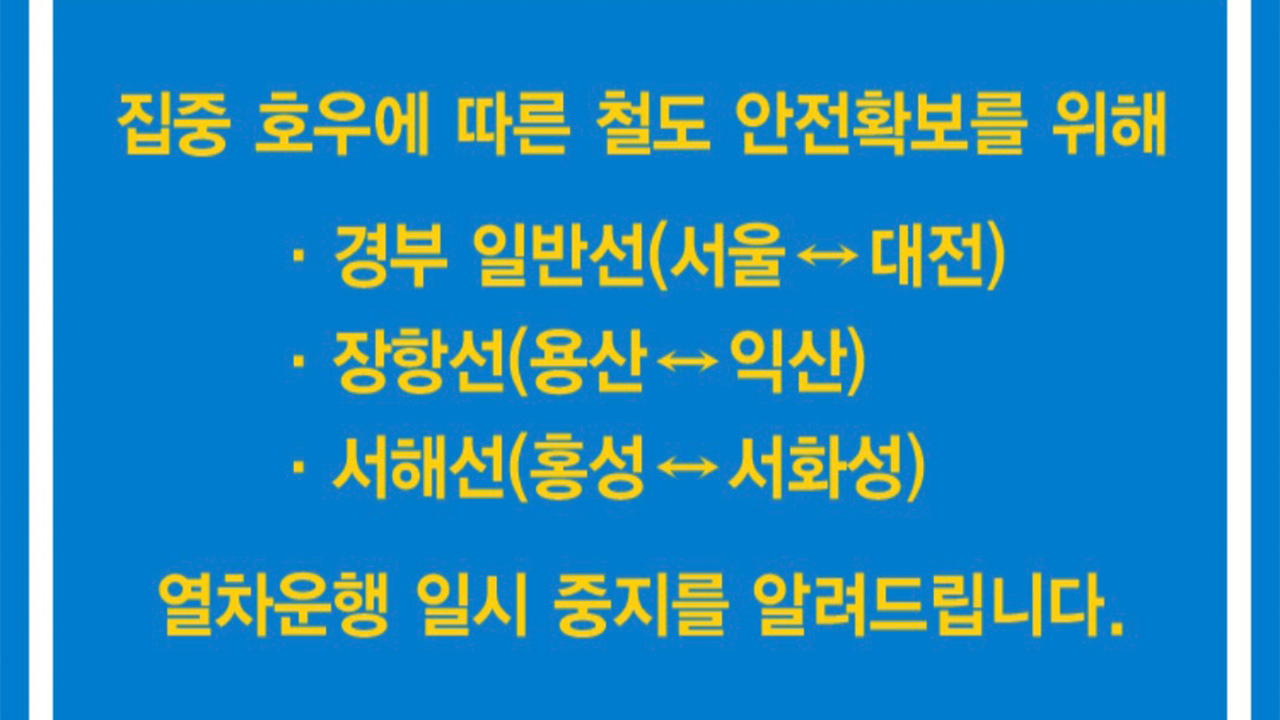 밤사이 폭우⋯경부선 등 일반열차 일부 운행 중지