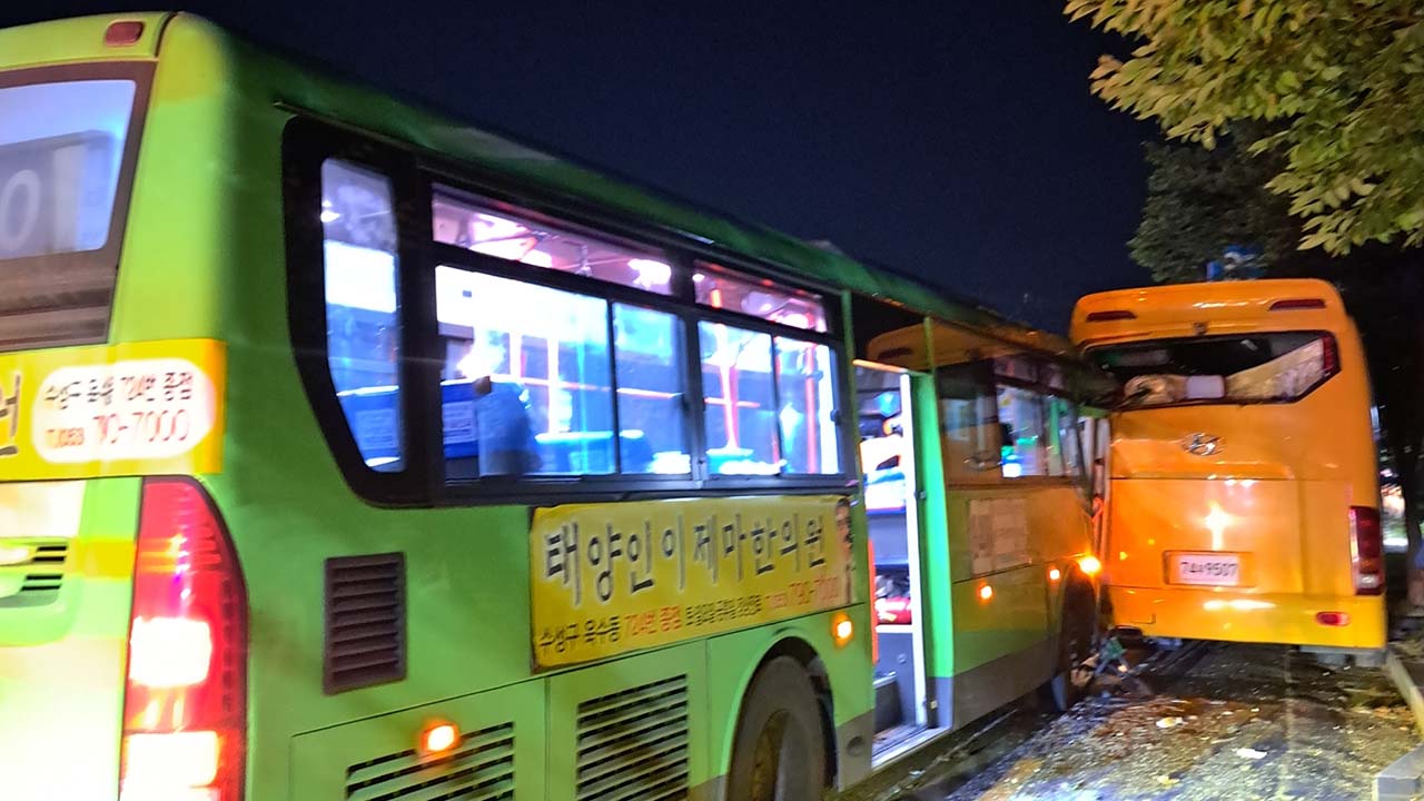 8월 22일 저녁 8시 50분쯤 경북 경산시 진량읍의 도로에서 달리던 시내버스가 갓길에 주차돼 있던 관광버스를 들이받았습니다.이 사고로 시내버스에 타고 있던 60대 여성 등 승객 4명이 다쳐 병원으로 옮겨졌습니다.경찰은 버스 운전기사 등을 상대로 정확한 사고 경위를 조사하고 있습니다.(사진 제공 경북 경산소방서)