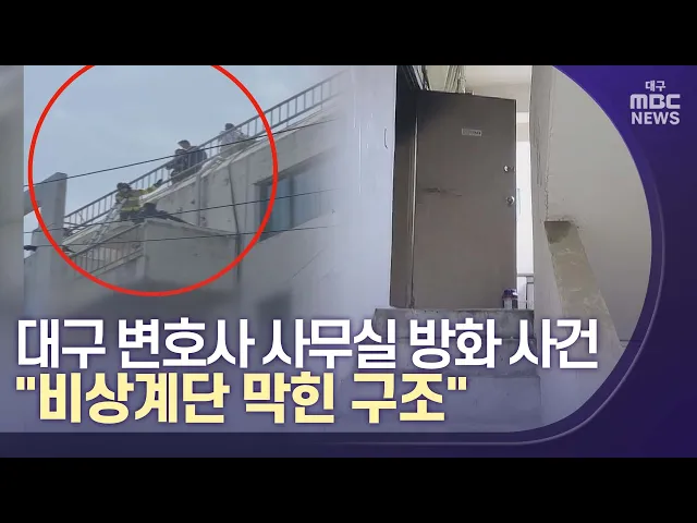 ◀앵커▶6월에 7명의 목숨을 앗아간 대구 변호사 사무실 방화 사건은 20여 분만에 불이 꺼졌는데도 인명 피해가 컸습니다. 당시 건물 내부에 스프링클러가 없었던 점이 문제로 부각됐습니다.비상계단과 연결되는 통로가 다른 사무실로 막혀 있는 구조여서 긴급 대피가 어려웠던 부분도 피해를 키운 요인으로 보이는데요,경찰...