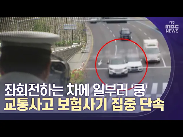 ◀앵커▶시청자 여러분, 운전하실 때 특히 넓은 교차로에서 좌회전할 때 주의하셔야겠습니다.차선을 넘어 크게 도는 차량을 골라 일부러 사고를 내고 보험금을 챙기는 교통사고 보험사기 사건이 최근 늘고 있습니다.경찰은 집중 단속을 벌이기로 했습니다. 손은민 기자입니다.◀기자▶두 개 차로에서 차들이 좌회전을 합니다. 1...