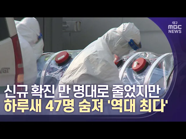 ◀앵커▶대구·경북의 코로나 신규 확진자가 2만 명대에서 다시 만 명대로 줄었습니다. 확진 규모만 놓고 보면 다행인가 싶지만, 더 걱정스러운 지표가 나왔습니다.어제 하루 대구경북에서 확진자 47명이 숨져 역대 최다 사망자를 기록한 겁니다.당분간 사망자 뿐 아니라 위중증 환자도 더 늘어날 거라는 전문가들의 전망도 있...