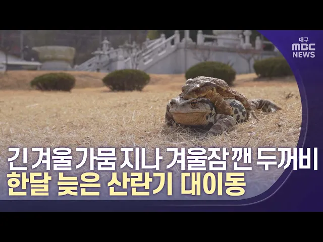 ◀앵커▶대구시 수성구 망월지는 전국 최대의 두꺼비 산란지로 알려져 있는데요. 길었던 겨울 가뭄이 끝에 첫 봄비가 내린 지난 주말.두꺼비들도 겨울잠에서 깨어나 산란을 위한 이동을 시작했습니다.2022년은 추위가 유독 길어서 평년보다 한 달 가까이 늦어졌는데요.그 여정을 손은민 기자가 담았습니다. ◀기자▶짙은 갈색 ...
