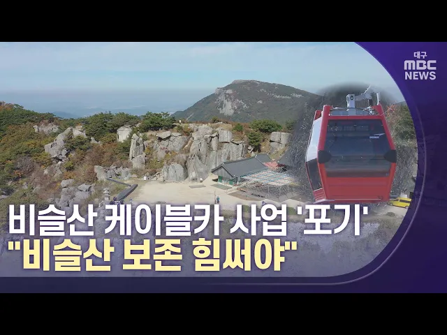 ◀앵커▶대구문화방송이 여러 차례 문제가 있다고 지적했던 비슬산 케이블카 사업. 결국 달성군이 사업을 최종 포기한 것으로 확인됐습니다.환경단체는 사업 예산을 비슬산 보존하는 데 사용하라고 달성군에 촉구했습니다. 1년 전, 팔공산 구름다리 철회에 이어 비슬산 케이블카 사업 포기까지.. 자연환경을 훼손하는 개발 방...