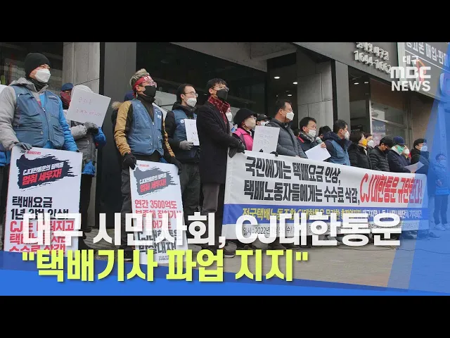 대구 지역 시민단체와 정치권이 CJ대한통운 소속 택배기사들의 파업을 지지하고 나섰습니다.진보당 대구시당과 인권운동연대 등 32개 단체는 오늘 기자회견을 하고 "CJ대한통운이 택배노동자들을 위한 사회적 합의를 무참히 짓밟고 자신들의 배만 채우고 있다"며 택배노조의 무기한 총파업을 적극 지지한다고 밝혔습니다.이...