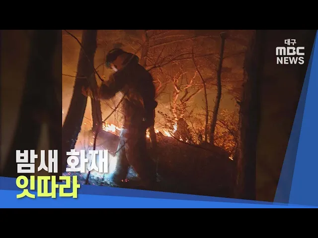 밤새 화재가 잇따랐습니다.오늘 새벽 1시 반쯤 경북 성주군 선남면의 한 섬유공장에서 불이 나 소방서 추산 내부 설비 등을 태워 천만 원 상당의 재산피해가 났습니다. 현장에 있던 작업자 2명이 급히 대피해 인명피해는 없었습니다.경찰은 기계적 요인으로 불이 난 것으로 보고 정확한 화재 원인을 조사하고 있습니다.어제...