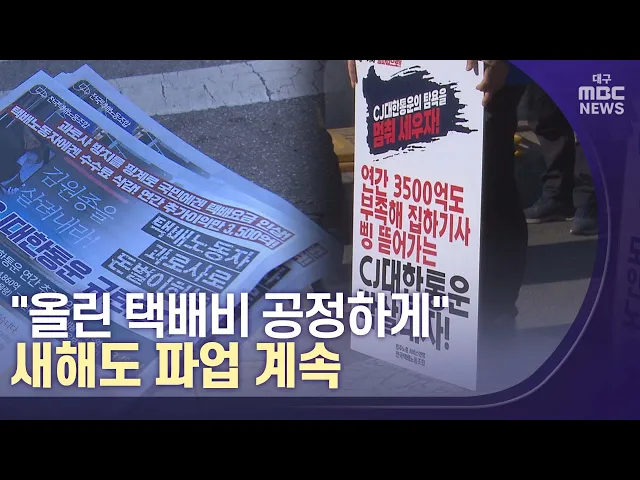 ◀앵커▶연말에 시작한 CJ대한통운 택배노조의 파업이 해를 넘겨서도 계속되고 있습니다.과로사 방지를 위한 사회적 합의에 따라 올린 배송비가 정작 택배기사들을 위해 쓰이지 않고 있다는 게 파업의 이유입니다.새해, 택배 대신 선전물을 들고 거리로 나선 택배기사들을 손은민 기자가 만나고 왔습니다.◀손은민 기자▶새해 ...