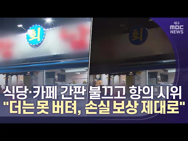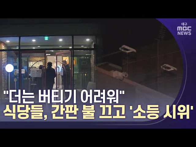 ◀앵커▶정부의 고강도 거리두기 정책에 기대했던 연말 특수까지 사라지면서 자영업자들의 반발이 커지고 있습니다.일부 자영업자들은 어제부터 간판 불을 끄고 정부 정책에 항의하는 시위를 벌였습니다.손은민 기자가 취재했습니다.◀손은민 기자▶식당들이 가장 바쁠 저녁 시간. 식당 주인이 간판 전원을 내립니다. 가게들이 ...