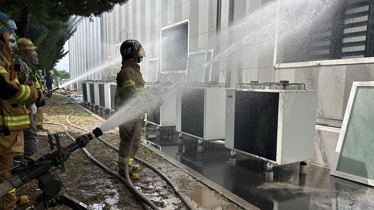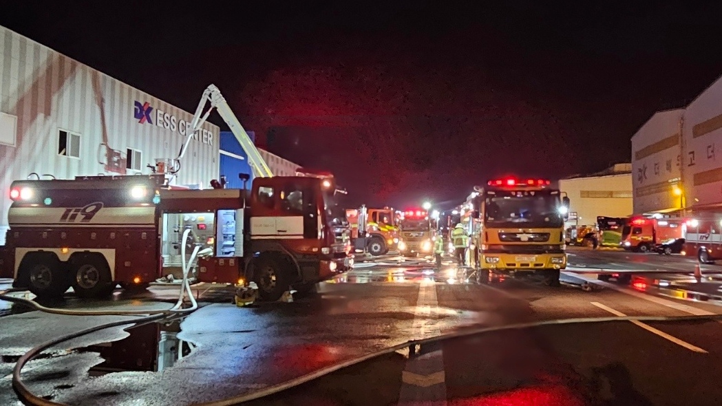 포항 동국제강 ESS 센터 화재 이틀째···"열폭주 현상에 내부 진입 못 해"