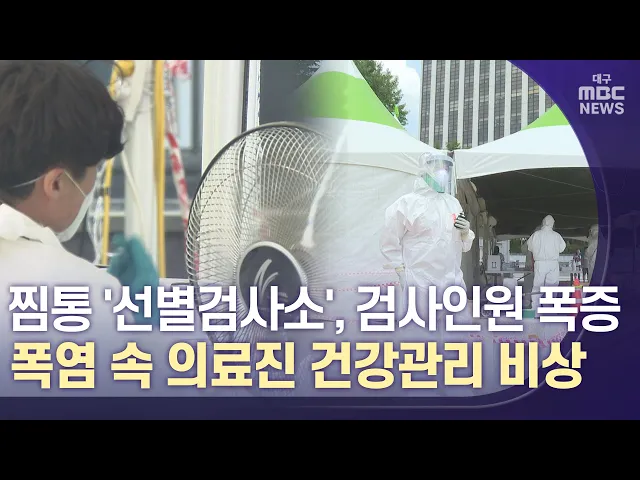 ◀앵커▶한낮 기온이 35도를 웃도는 폭염경보가 대구에 내려진 지 일주일째입니다.특히 코로나19 검사를 하는 야외 선별 검사소는 그야말로 불가마, 찜통입니다. 의료진도, 검사를 기다리는 시민들도 열사병이나 탈진 같은 온열 질환에 노출되기 쉬운데요.내일부터는 밤에도 기온이 떨어지지 않는 열대야가 이어질 전망이이...