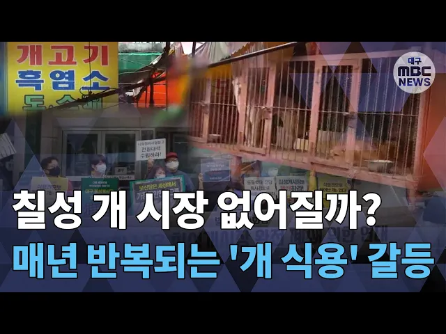 ◀앵커▶ 다음 달 11일이면 초복인데, 해마다 이때쯤 되면 전국의 동물보호단체와 활동가들이 대구로 모여 시위를 합니다.대구 칠성시장에 아직 남아 있는 개시장 때문입니다.매년 반복되는 갈등에 대구시장까지 나서서 개 시장을 폐쇄하겠다고 약속했는데, 2년이 넘도록 진척이 없습니다.손은민 기자가 취재했습니다.◀기자▶ ...