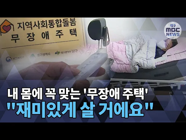 ◀ANC▶몸이 불편한 장애인들에겐비장애인이 거주하는 보통의 집은생활하기 불편한 점이 많습니다.휠체어를 타고는 이용하기 힘든주방과 욕실, 그리고 낮은 문턱도큰 장애물인데요.이런 장애물들을 없애 장애인들이스스로 생활할 수 있게 만든 무장애 주택이만들어졌습니다.손은민 기자가 보도합니다. ◀END▶ ◀VCR▶...