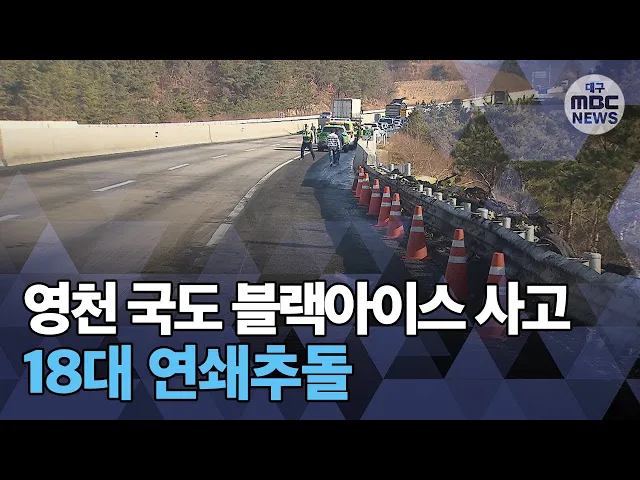 ◀ANC▶오늘 새벽 경북 영천의 한 국도에서 차량 18대가 서로 부딪히는 사고가 났습니다.양방향에서 차가 미끄러지면서 사고가 났는데짙은 안개로 시야가 잘 보이지 않았던 데다간밤에 내린 비가 얼어 생긴 블랙아이스,도로 위 살얼음 때문이었던 것으로 보입니다.손은민 기자입니다. ◀END▶ ◀VCR▶안개가 자욱한 도...
