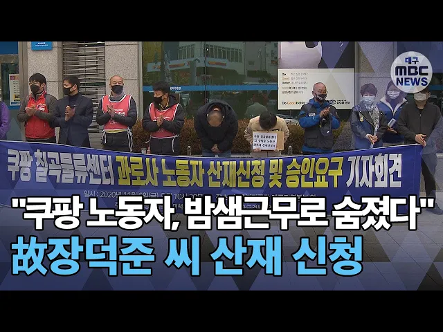 ◀ANC▶[남]한 달 전 쿠팡 대구 물류센터에서 야근 후 숨진 故 장덕준 씨의 유족들이 오늘 산재 신청을 했습니다. [여]장 씨의 부모는 아들의 죽음을 통해야간 근로가 얼마나 위험한지 알려지길 바란다고 말했습니다.오늘 첫 소식은 손은민 기자가 전해드립니다. ◀END▶ ◀VCR▶쿠팡 대구 물류센터에서 밤새워 일하고,...