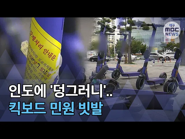 ◀ANC▶최근 대구에서도 전동 킥보드 공유 서비스가 확대되고 있는데요.사용한 뒤 아무렇게나 세워두고 가거나, 인도와 도로를 위험하게 주행하는 일이 많아 민원이 끊이지 않고 있습니다.손은민 기자입니다. ◀END▶ ◀VCR▶전동 킥보드 십여 대가대로변에 널브러져 있습니다.건물 진입로에 덩그러니 세워져 있거나 인...