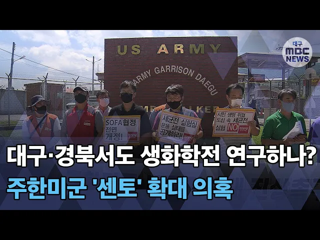 ◀ANC▶생화학전이 일어났을 때를 대비한 방어체계를주한미군이 국내에서 연구하고 있다는 사실이5년 전 드러나 논란이 됐었죠.'센토'라는 이름의 생화학무기 방어 프로그램이 대구·경북을 포함한 전국 미군기지에서 확대·운용될 거라는 의혹이 제기됐습니다.탄저균 같은 위험한 물질을 들여와 실험하는 건 아닌지, 시민...