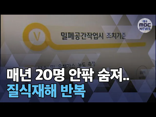 ◀ANC▶지난 주말 발생한 맨홀 질식사고 소식연속으로 전해드리고 있습니다.오늘은, 질식 재해가 반복되는 밀폐 작업장에 대한 허술한 관리·감독과 가벼운 처벌에 대해 손은민 기자가 짚어봤습니다. ◀END▶· ◀VCR▶C.G.]매년 20명 안팎의 노동자가밀폐된 곳에서 일을 하다 숨집니다.대구·경북에서도 최근 5년간 12명...