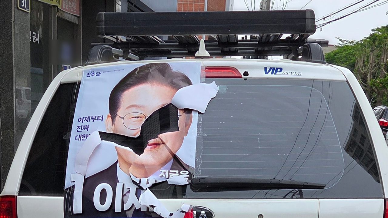 경북 영천 2곳서 김문수 후보 현수막 훼손···예천에서는 이재명 후보 현수막 훼손