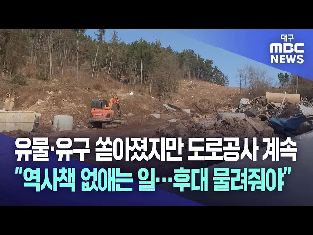 ◀앵커▶통일신라시대부터 조선시대에 걸친 유물이 출토된 대구 달성 죽곡산 일대에서 문화재 지표조사도 없이 도로 공사가 진행됐다는 소식, 전해드린 적 있는데요.공사를 멈추고 뒤늦게 조사해보니 실제로 유물과 유구 20여 점이 출토됐습니다. 그런데 달성군이 공사를 그대로 진행하기로 해 다시 논란입니다.손은민 기자입...