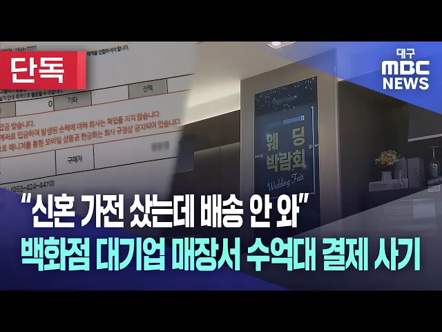 ◀앵커▶대구의 한 백화점 가전제품 매장에서 대규모 사기 사건이 발생했습니다.매장 직원이 손님과 회사 사이에서 돈을 가로챈 걸로 보이는데 결혼이나 이사를 앞두고 가전을 패키지로 구매한 피해자들이 돈을 내고도 제품을 받지 못하고 있는 상황입니다.손은민 기자의 단독 보도입니다.◀기자▶결혼을 앞둔 김 모 씨는 3월 ...