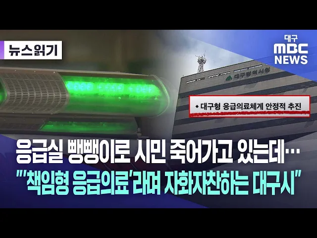 우리복지시민연합이 성명을 내고 "대구 책임형 응급의료 대책은 선전용이 됐다"고 규탄했습니다. 복지연합은 "1년째 이어지는 의료 대란으로 상급종합병원들은 의료진 부족과 응급실 운영에 파행을 겪고 있다"며 "이런 와중에 대구에서도 2024년 4월 얼굴이 찢어진 환자가 응급실 3곳을 전전하다 숨지는 사건이 발생했고 경...