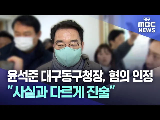 ◀앵커▶정치자금법 위반 혐의로 기소된 윤석준 대구 동구청장이 '개인 계좌가 사용된 줄 몰랐다'던 기존 입장을 뒤집고 혐의를 모두 인정했습니다.다만 구정 소홀 논란과 거취에 대한 입장은 밝히지 않았습니다.손은민 기자입니다. ◀기자▶검은 정장을 입은 남성이 법정을 빠져나옵니다.지난 지방선거 당시 윤석준 대구 동구...