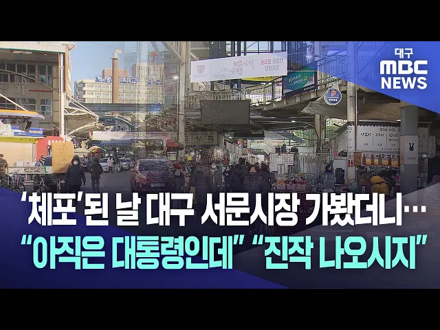 ◀앵커▶보수 지지세가 콘크리트처럼 강한 대구·경북에서도 시민들이 윤 대통령이 체포되는 걸 지켜봤습니다.지지했던 만큼 탄식하는 사람도 많았지만 불법 계엄은 분명히 잘못이라며 책임이 필요하다는 목소리는 다른 지역과 같았습니다.손은민 기자입니다.◀기자▶윤석열 대통령이 체포됐다는 소식에, 대구 서문시장에선 '이...