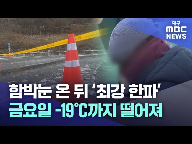 ◀앵커▶1월 8일 수요일 저녁에는 함박눈이 쏟아지더니 9일은 올겨울 들어 가장 강력한 추위가 찾아왔습니다.조금 뒤인 밤 9시부터 대구에도 첫 한파주의보가 발효되는데 추위는 내일 아침이 절정에 이를 걸로 보입니다.손은민 기자입니다.◀기자▶그늘진 곳마다 전날 내린 눈이 녹지 않고 그대로 남아 있습니다.빙판길이 된 산...
