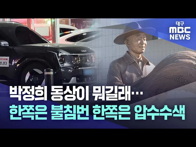 ◀앵커▶12.3 내란으로 혼란스러운 연말, 대구경북에선 박정희 전 대통령 동상에 대한 반발이 이어지고 있습니다. 동상 지키라며 시 공무원을 불침번 세우는 게 맞냐는 비판도 나오고, 동상 규탄 기자회견을 했다가 압수수색을 당하는 일까지 벌어지고 있습니다.손은민 기자가 취재했습니다.◀기자▶논란 속에 세워진 동대구역 ...