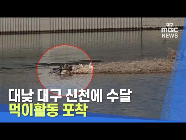 대낮 대구 도심을 흐르는 신천에 멸종 위기 야생동물 1급인 수달이 발견됐습니다.2월 18일 낮 2시쯤 대구 신천 도청교 인근 하중도에서 멸종 위기 야생동물 1급 수달이 제 몸집만한 크기의 메기를 잡아 먹이활동을 하는 모습이 대구시설공단 신천둔치소 수목관리 직원의 휴대폰에 포착됐습니다.영상에는 잡은 물고기가 달아...