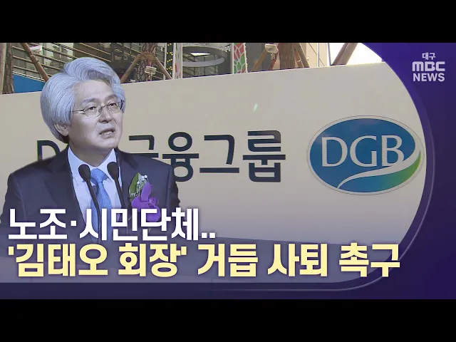 ◀앵커▶검찰이 DGB 금융그룹 김태오 회장을 뇌물 비리 혐의로 기소한 건 지난해 12월. 한 달이 지난 지금까지도 김 회장은 입장을 밝히지 않고 있습니다.오히려 국내 최대 로펌에 변호를 맡겨 자신을 방어하기에만 급급한데요, 김 회장에 대한 사퇴 요구는 갈수록 거세지고 있습니다.한태연 기자가 보도합니다.◀한태연 기자▶...