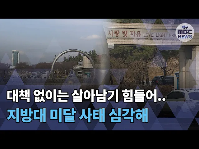◀ANC▶[남]대구와 경북 모든 대학이올해 입시에서 정원을 채우지 못해추가 모집을 하고 있습니다.하지만 미달 사태는 벗어나기 힘들 것이라는 전망이 나오고 있습니다.[여]대학마다 자구책을 마련하고 있지만,위기를 극복할 수 있을지 미지수입니다.오늘 첫 소식은 한태연 기자가 보도합니다. ◀END▶ ◀VCR▶대구와 ...