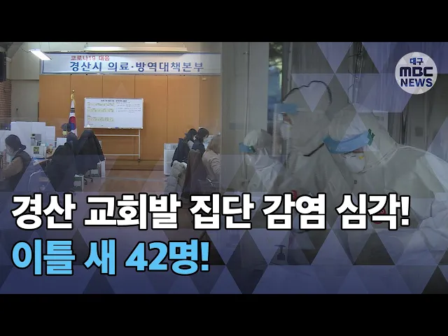 ◀ANC▶경북 경산에서도 교회발 집단 감염이 심상치 않습니다.오늘(어제) 하루에만 확진자가 24명 발생했는데, 이 가운데 70%인 17명이 교회와 관련돼 있습니다.학교, 어린이집으로까지 확산할 조짐을 보이는 가운데, 정부는 연말연시 모든 종교활동을 비대면으로 전환하도록 했습니다.한태연 기자가 보도합니다. ◀END...