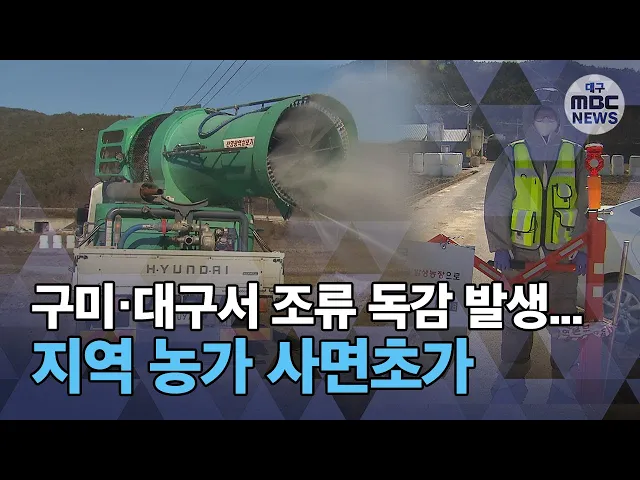 구미시가 고병원성 조류인플루엔자가 검출된 선산읍의 육계농장 닭 6천 900여 마리를 폐사 처리했습니다. 주변 3km 안의 2개 농장 닭 3만 7천 800마리, 소규모 가금 농가의 조류 천 700여 마리도 살처분했습니다. 반경 10km 안 가금농장에는 30일 동안, 구미 전체 가금농장에는 일주일 동안 이동을 제한했습니다. 경상북도...