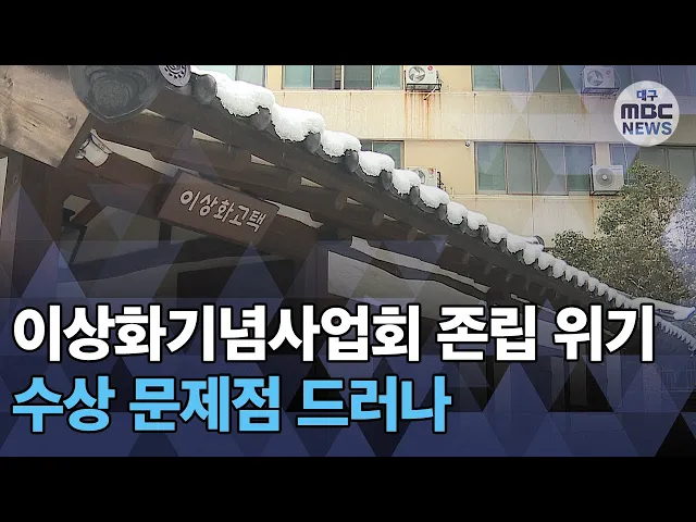 ◀ANC▶[남]민족 시인인 이상화 시인을 기리기 위해 지역 문인들을 중심으로 지난 2008년 설립한 사단법인 이상화기념사업회가 최근 파행을 겪으면서 존립 위기에 놓였습니다.이상화 시인상 선정 과정에서 규정을 어기는가 하면,사업회를 이끄는 이사진들이 둘로 나뉘어 볼썽사나운 모습을 보여주고 있습니다.[여]대구시...