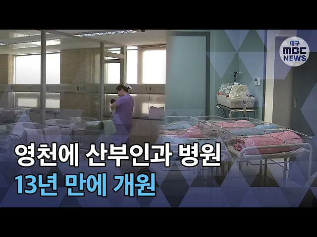 ◀ANC▶최근 영천에 무려 13년 만에 분만이 가능한 산부인과 병원이 문을 열었습니다.의료기관이 적은 경북에서는 이처럼 산부인과 개원이 뉴스가 될 정도인데요.출생률이 갈수록 떨어지면서경북지역 시·군 절반 이상이산부인과 병원이 없어 원정 진료와 원정 출산을 하는 실정입니다.한태연 기자가 보도합니다. ◀END▶...