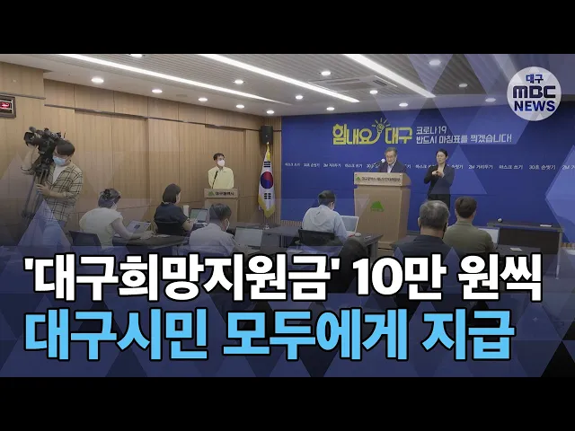 ◀ANC▶대구시가 코로나19로 힘들어하는 모든 시민들에게10만 원의 희망지원금을 지급합니다.지난 1차 긴급생계자금이나정부의 긴급재난지원금 지급 과정에서 나타난 문제점을 보완했다고 합니다.한태연 기자가 보도합니다. ◀END▶ ◀VCR▶대구희망지원금 10만원은대구 시민이면 누구나 받을 수 있습니다.나이·소득·성...