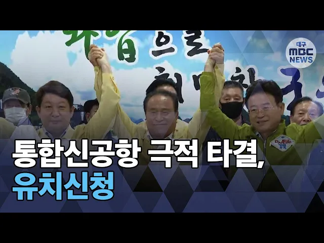 ◀ANC▶[남]대구·경북 통합 신공항공동후보지 유치 신청 마지막 날인 오늘군위군이 극적으로 유치 신청을 했습니다.이로써 6년 동안 추진돼 온 대구·경북 통합 신공항은 군위 소보와 의성 비안으로 갑니다.[여]공항은 8년 뒤인 오는 2028년에 완공될 전망입니다.오늘 첫 소식, 한태연 기자가 보도합니다. ◀END▶ ◀VC...