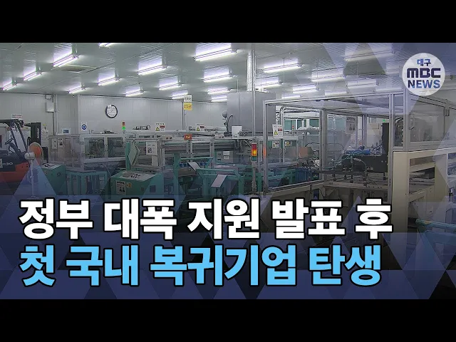 ◀ANC▶값싼 인건비와 시장 개척을 이유로 국내 기업들이 해외로 공장을 옮기면서국내 일자리가 줄었는데요.정부가 코로나19 위기 극복을 위해 해외 공장을 국내로 옮기는 기업에세금 감면 등 각종 혜택을 주는 이른바 '리쇼어링'을 추진하고 있는데,정책 추진 후 처음으로 국내로 유턴한 기업이 김천에 들어섭니다.한태...