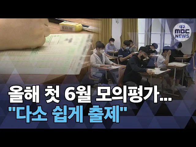 ◀ANC▶[남] 코로나 19로 올해는 수능일이 예년보다 2주 가량 늦춰지는 등 수험생들이 겪는 혼란과 부담은 그 어느해보다 큽니다.오늘 대구를 비롯한 전국에서 6월 모의평가가 치러졌는데요.[여] 코로나 19로 수업을 제대로 받지 못한고3 들을 고려해 다소 쉬운 수준의 문제가 출제됐다는 분석이 나옵니다.보도에 한태연 ...
