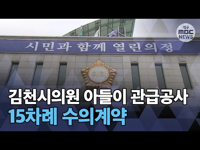 ◀ANC▶김천시 여러 공무원이 시간외 수당을 부당하게 받았다가 적발됐다는 소식, 지난주 전해 드렸는데요.김천시가 시의원의 자녀 건설사와수의계약을 하고 공사를 맡겨온 것으로감사원 감사 결과 드러났습니다.한태연 기자가 보도합니다. ◀END▶ ◀VCR▶김천시 문당동의 한 마을입니다.지난 2016년 4월 김천시의회 A...